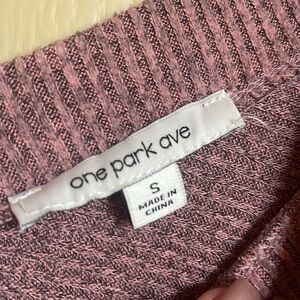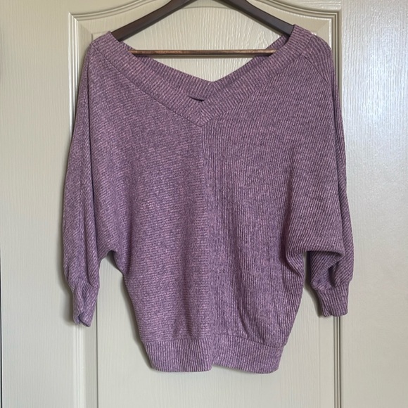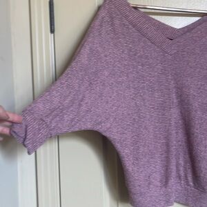 Pink & grey quarter sleeve top. Sleeves are a bat wing style. V neck front & back. Ripped texture & thin. Size small. Great condition, wore once.