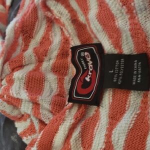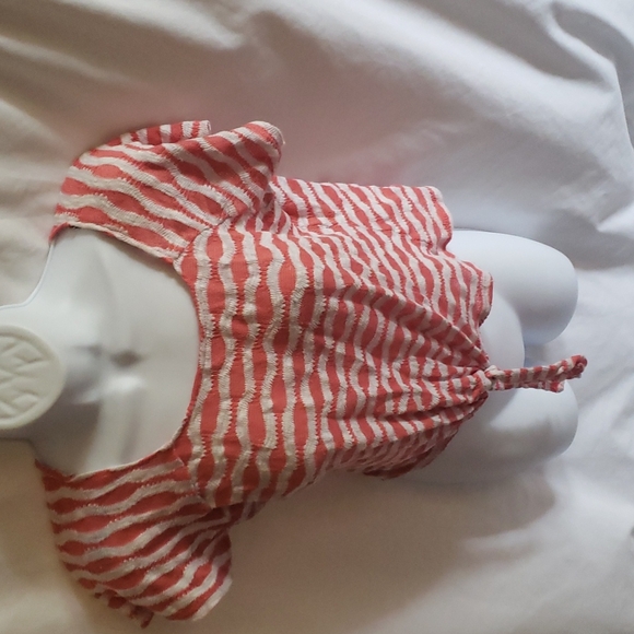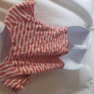 rose & white top with stripes and tie in front