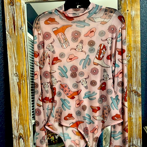 Very cute Mesh Western Bodysuit 🤠 With Mock Neck