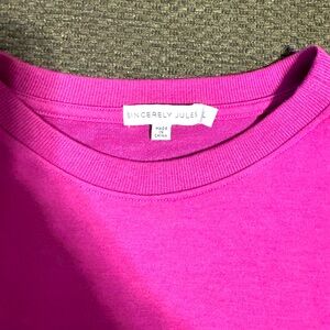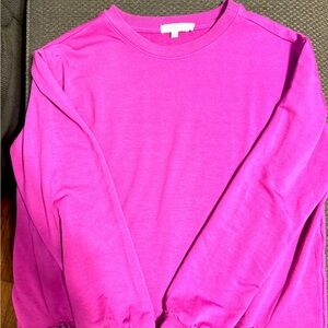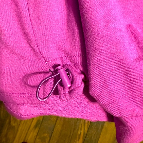 Dark pink top. Draw strings on either side to sinch in. Great with leggings. Never worn but took tags off.