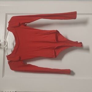 Express long sleeved body suit. Size XS. Coral color. Bows to tie at shoulders.