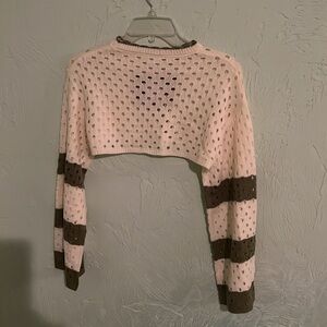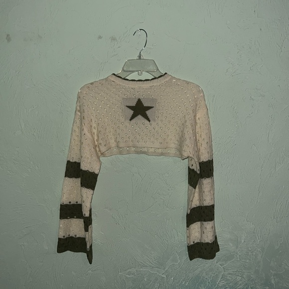 Brand New top bought offered to move no brand very cute is more of a darkest green color took pictures with flash and without flash more of a cream not a white color size medium