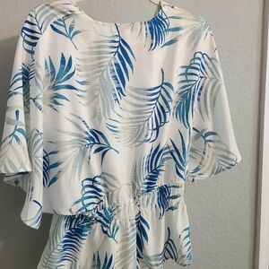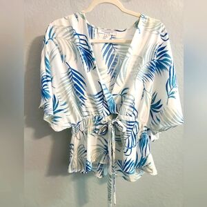 Are the leaves green or blue on the blouse?