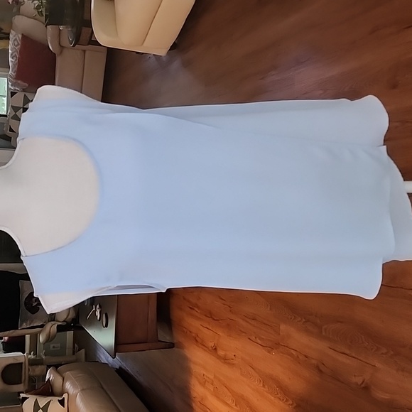 100% polyester, pale blue, never worn, very nice dresses top