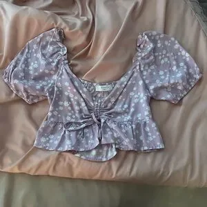 Cute purple top ruffle shoulders ties in the middle Never worn