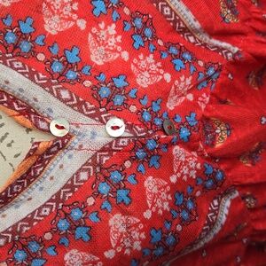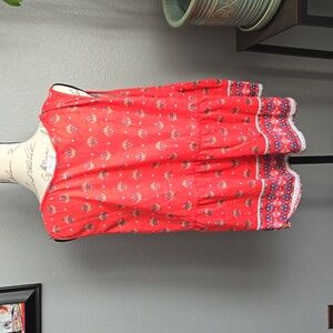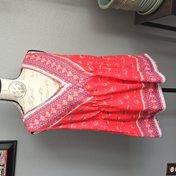 Soft, sleeveless summer top in vibrant red and turquoise colors. 23" pit to pit 24" shoulder to hem GT