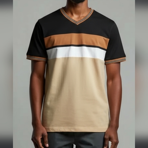 men's short sleeve t shirt like new High quality SOBK Black Brown V Neck T Shirt Men's Large