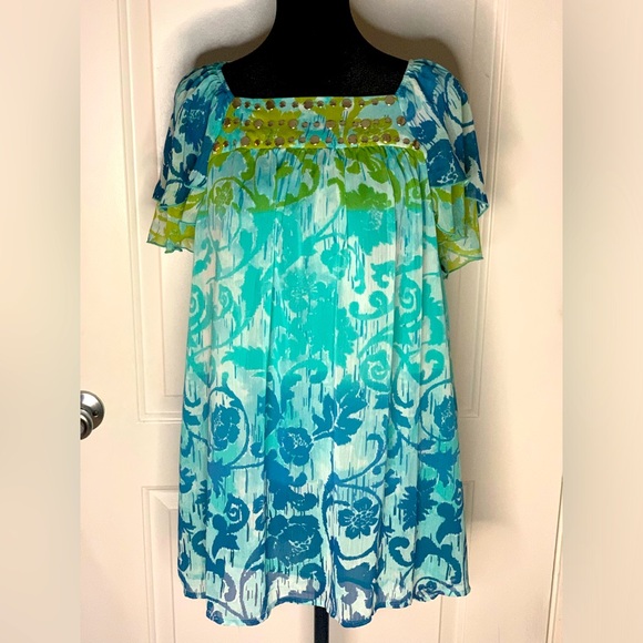 Brand new, multi color top with short sleeves, silver embellishments. From Catherine’s. Size 0X