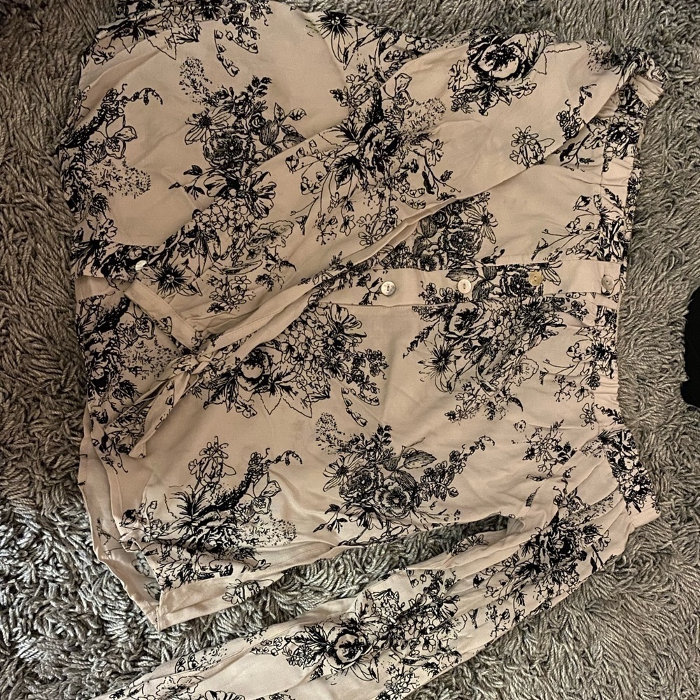 Pink and black floral off the shoulder top