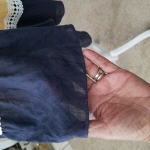 Beautiful cool top with layered crochet and bell style sleeves. Nothing clinging to you
