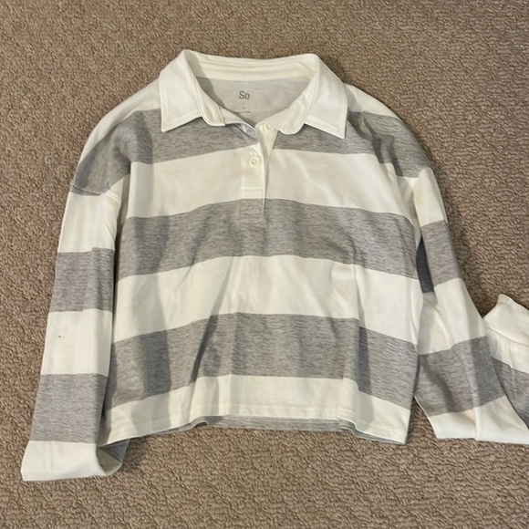 Long sleeve top. This is more of a crop top. Size small purchased in the junior department at Kohl’s. Gray and white striped never worn.