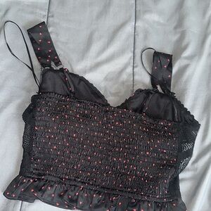 Black lace detailing on the sides of the top