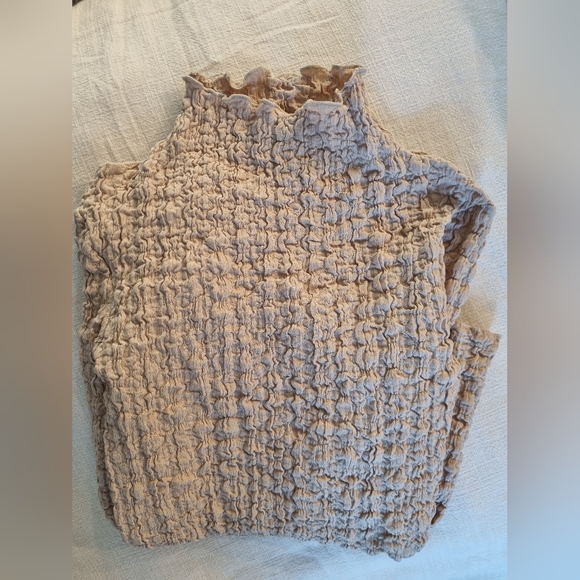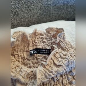 Super cute crinkly top from Zara. Size small. New without tags. Color tan. Stretchy.