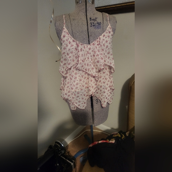 Abercrombie and Fitch tank top with beautiful flower print, light, and flowing. used but in good shape. the colored is a pink peach color.