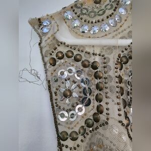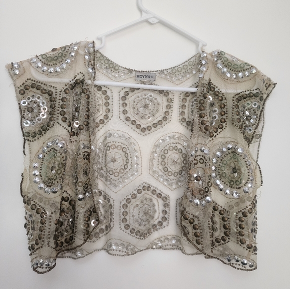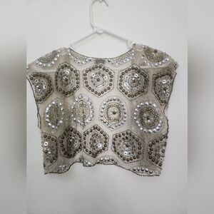 Anthropologie Moyna Gold/Silver Sequin Embroidered Sheer Top Vest Women's Small