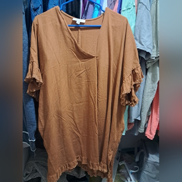 Burnt orange blouse.