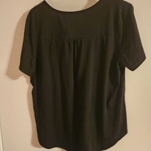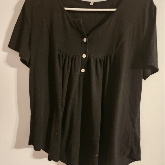 Short-sleeved babydoll-style top with three-button detail. Solid black, size XL. Excellent condition.