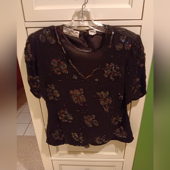 100% Pure Silk Dressy Sequin Top. Scala brand. Back Zipper Worn once.