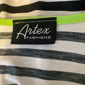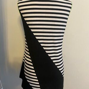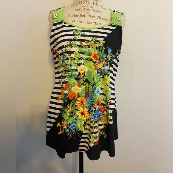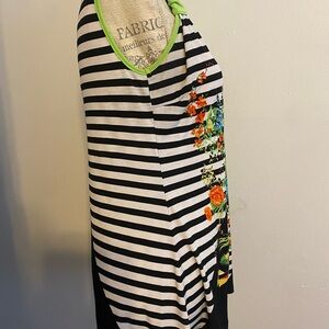 Beautiful and colorful, yellow, orange, blue, green, red flowers with black and white stripes, Size Medium. Sleeveless- 26 inches length.