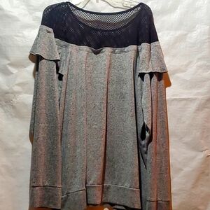 Mesh across the top, ruffled shoulder gray/black long sleeve shirt.