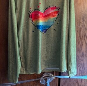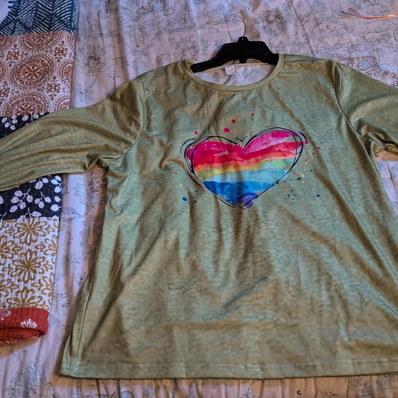 Long sleeve green top with heart in center. Size XXL. Brand New.