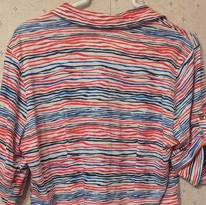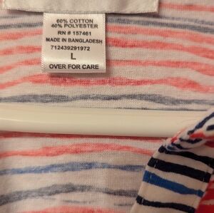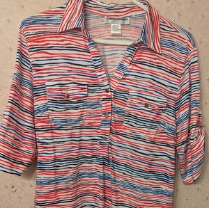 Red, white, and blue top. Pockets in the front. 1/2 sleeve. gold buttons.