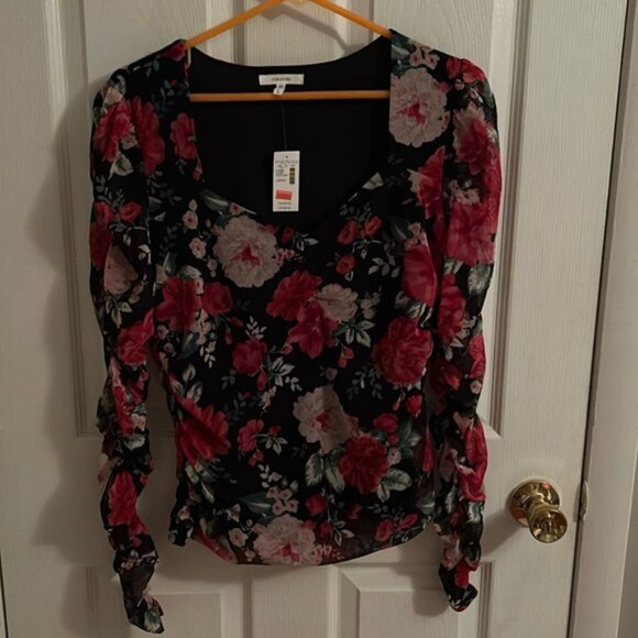 Floral woman’s top, slightly gathered on sides and at end of sleeve, BRAND NEW