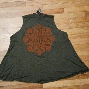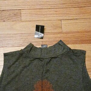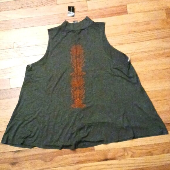 tank top with mock neck..very stretchy soft material.. flares open .. Plus size 26..colors are dark grey and design is red..