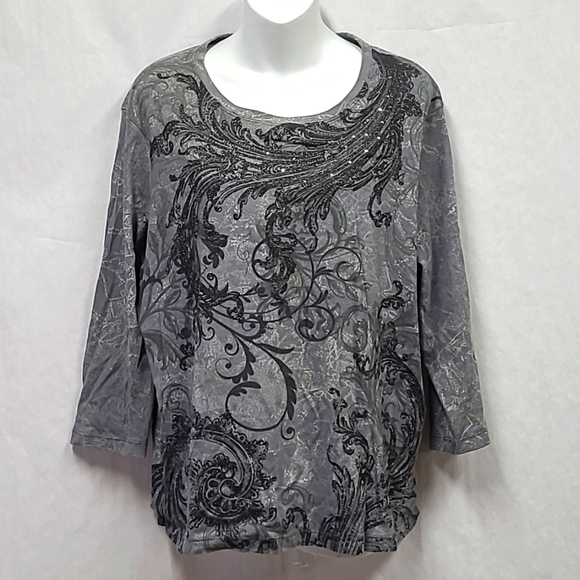 nicole miller, sparkles and rhinestones, gray/black, XL, smoke free.