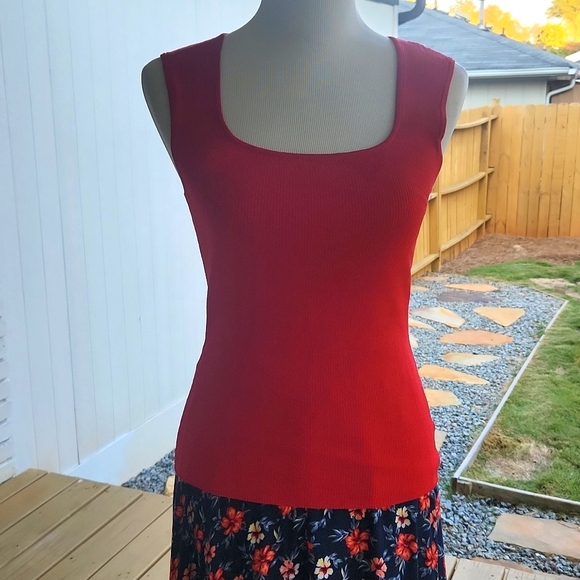 Red sleeveless ribbed top. Blend of rayon/nylon. Great for casual or elevated look.SIZE PS Jones of New York.