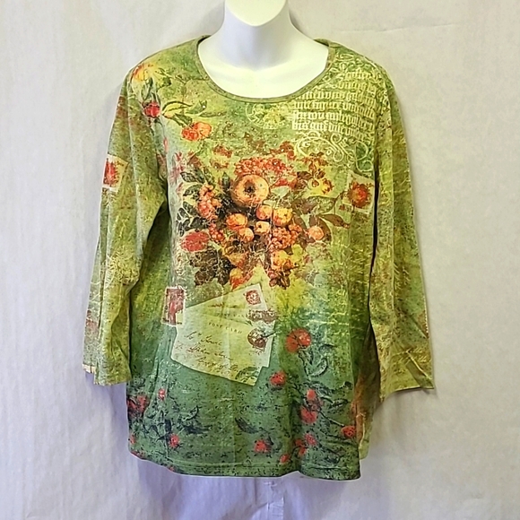 size Ll gold sequence below neck. pretty shades of green. some free.