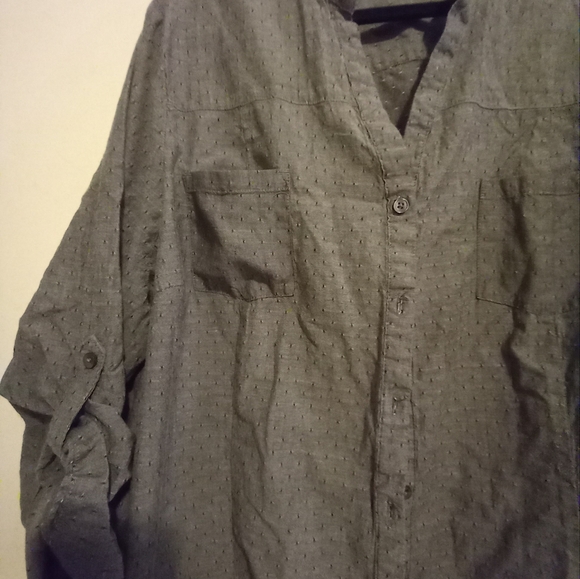 5hia a a simple button down top with long sleeves. very comfortable looking no tags. no flaws appears to be unworn. might be brand new.