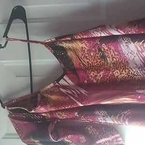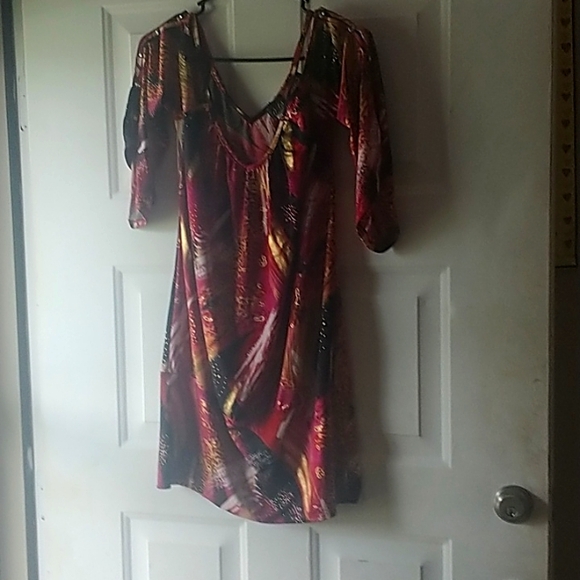 Beautiful multicolored dressy top or mini dress nice polyester stretchy