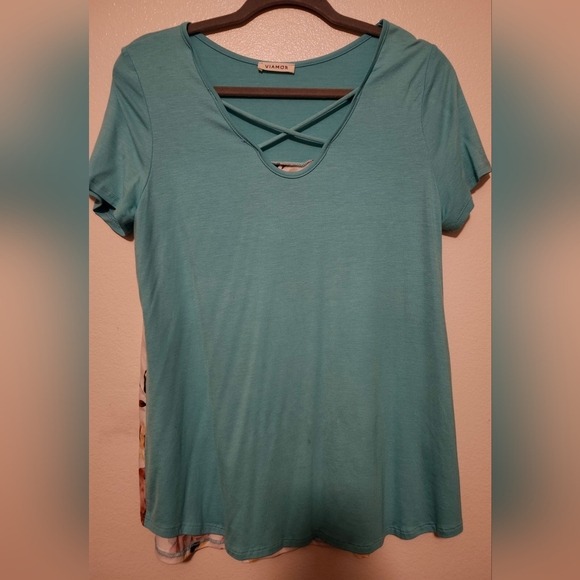 Floral Top teal color background Gently used