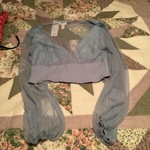 Light blue Lacey top Size large Elastic at bottom of sleeve Button up front ( pin like buttons) Crop top Ptp 19
