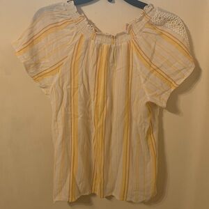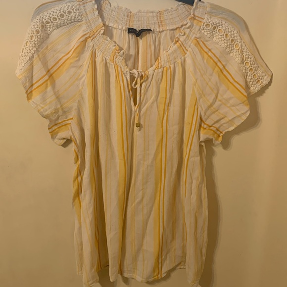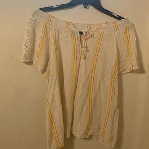 Top has drawstring closure, wide neck can be worn off the shoulders. In good condition.