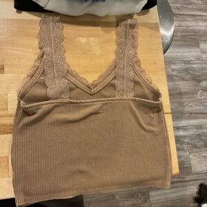 Brown cropped tank Lace straps Looks new XS