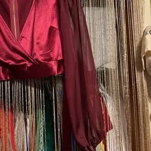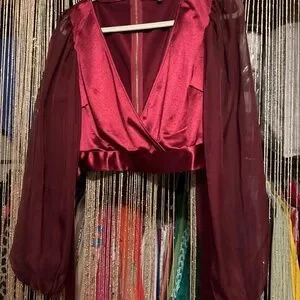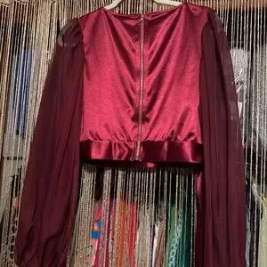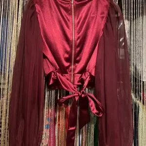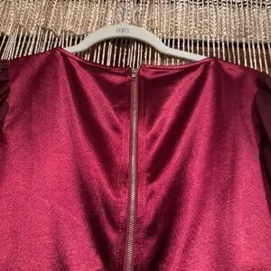 Zip up the back and the color is burgundy