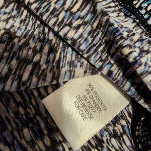 Sleevless top that can be worn under a jacket or alone. P2P is 21", neck to hem is 28", made of polyester, spandex. Pet and smoke free home.
