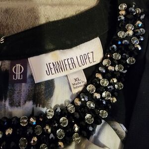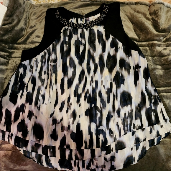 Sleevless top that can be worn under a jacket or alone. P2P is 22", neck to hem is 25", made of Rayon. Beautiful sequins stones on the neckline, hook & eye closure on the back neck, the back separates with a flow of material. Pet and smoke free home. Just beautiful!