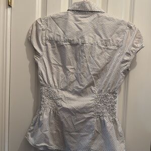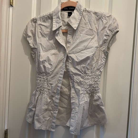 Top. Size small. Bought at boutique for work. Gathered in center. Really cute! Clean smoke free home.
