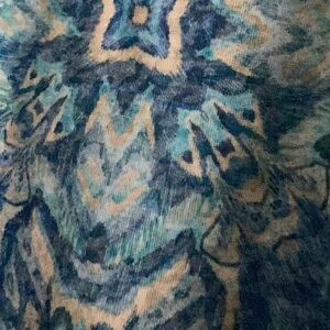 Blue and beige top. Sleeves are 3/4.