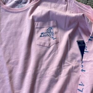 Long sleeve cotton t-shirt, pocket in front, print on back, writing on the sleeve