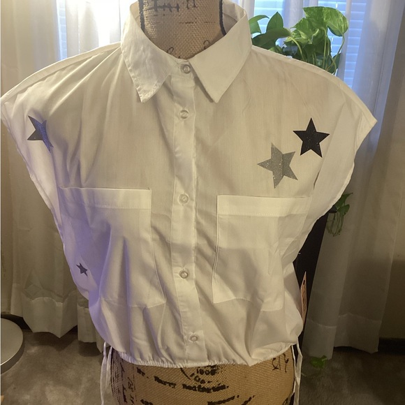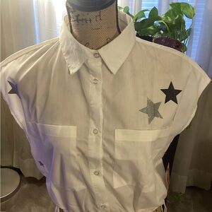 White summer top with metallic star accents..elastic and drawstring waist..NWT.