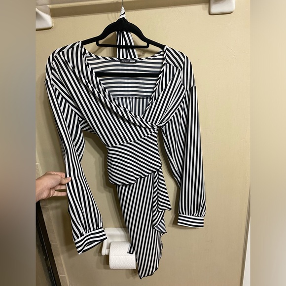 Black and white long sleeve chiffon/mesh top. Wrap/tie up waist details. Size small.