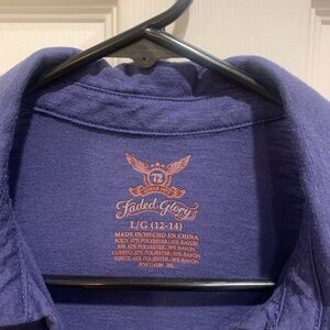 Blue top not full sleeve not half sleeve thin light weight Faded Glory Size L definitely worn but no signs of wear