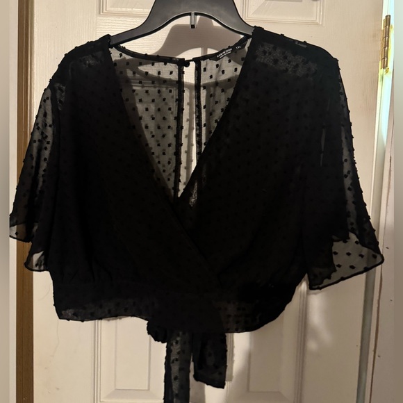 V neckline, tied in the back, never worn