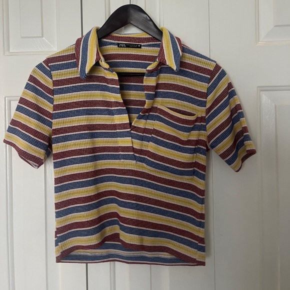 Zara top. I have a safety pin it it because it has a deeper neck line, I can keep it there or remove it. Great condition