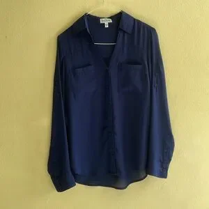 Express portofino short. Long sleeve, buttondown, v-neck. Sheer polyester. Great condition.