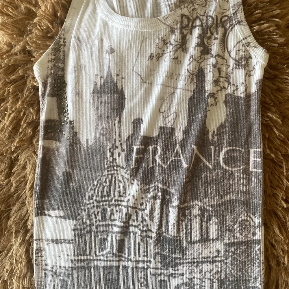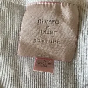 This is a never used top size small Romeo and Juliet Couture never used. It’s really cute. The pictures are clear it’s white with some gray.
